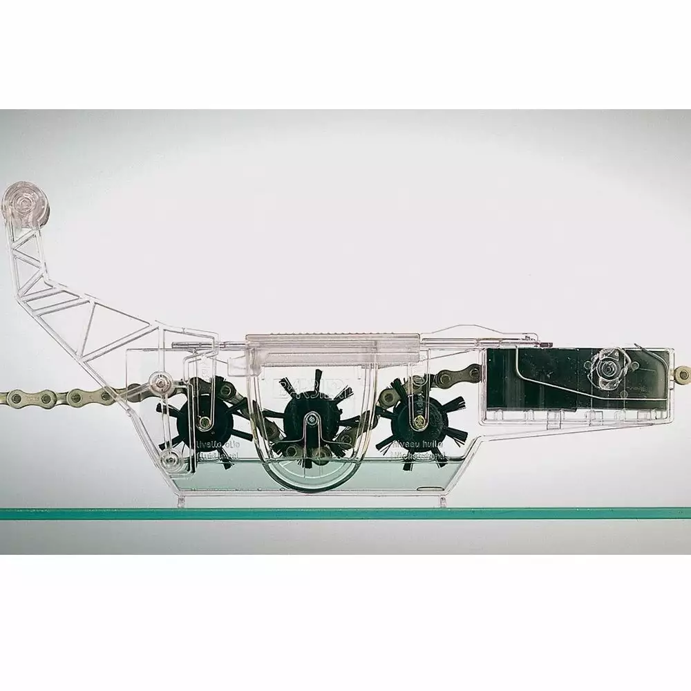 The first-ever manufacturer of chain cleaners. With this device, there is no need to get your hands dirty, as the chain cleaner box does the job for you. Clean your chain fast, easily and thoroughly thanks to the 1152 nylon bristles and 2 side scrapers.