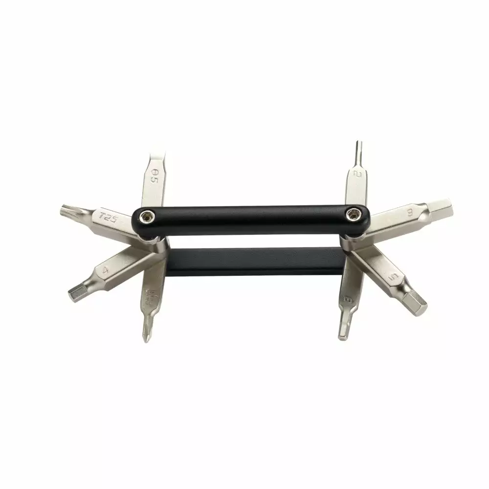 Compact and length multitool with 8 different functions, to keep the essential tools in one place.