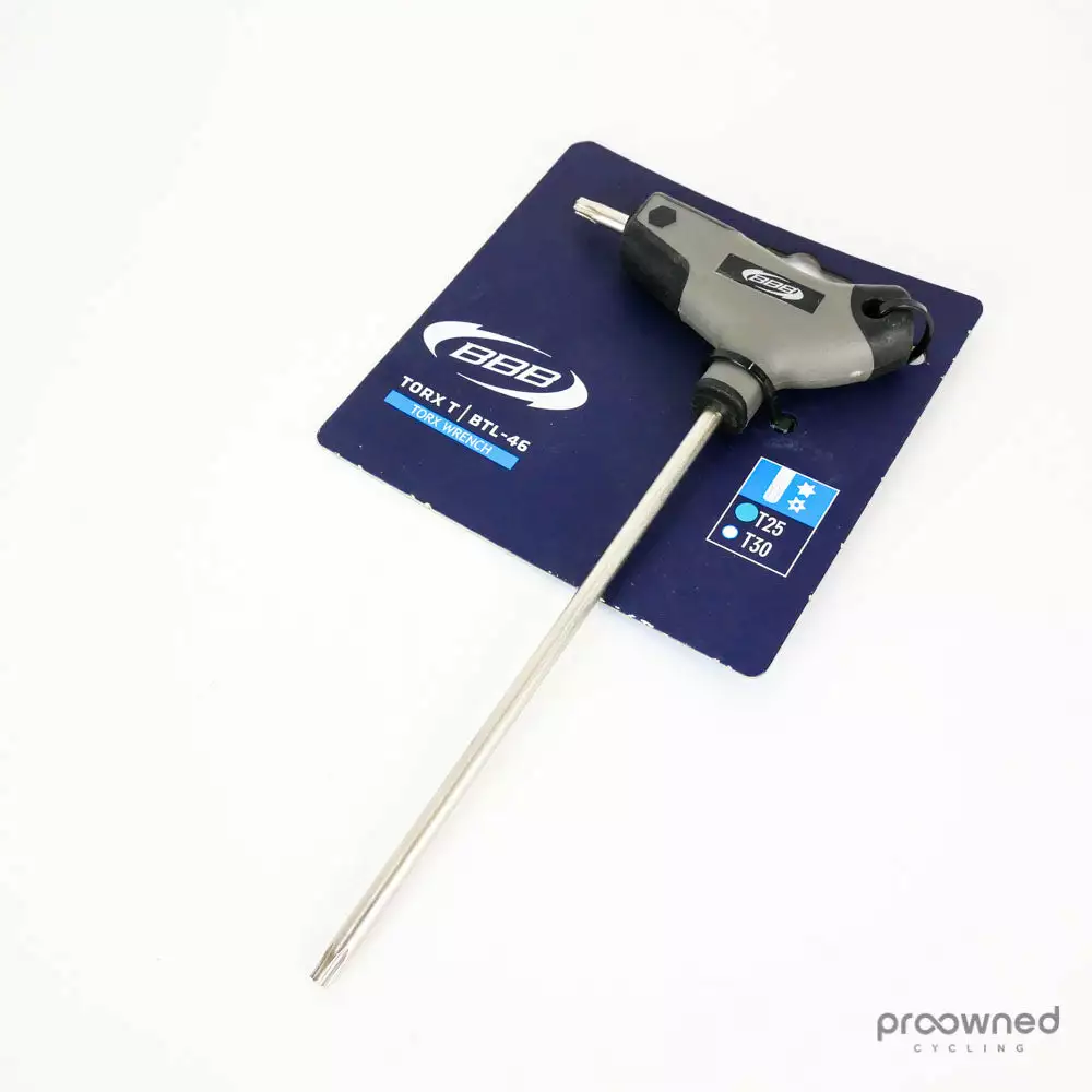 Brand new BBB BTL-46 Torx key made for the everyday home mechanic. Made with a T-handle that is made out of durable composite material. Compatible with torx screws with or without pin.