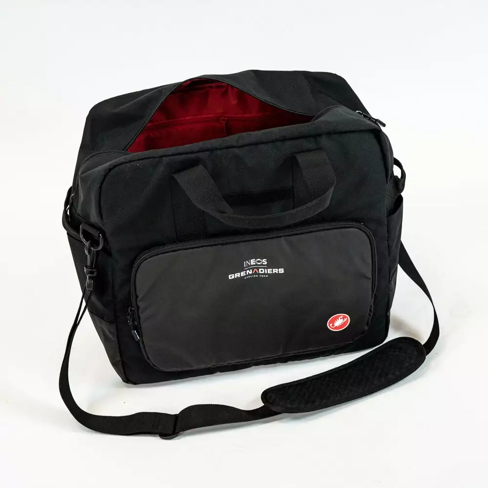 Castelli Weekender Casual bag by Ineos Grenadiers is ideal for transporting computers and papers. It has an outside pocket with many little shelves.