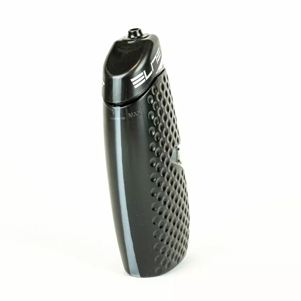 Brand new Elite Chrono Water bottle with short tip ensures a clean and aerodynamic look on the bike. When pressing the bottle, the membrane releases liquid. Thanks to a transparent stripe on the bottle, you can always see the liquid level.
