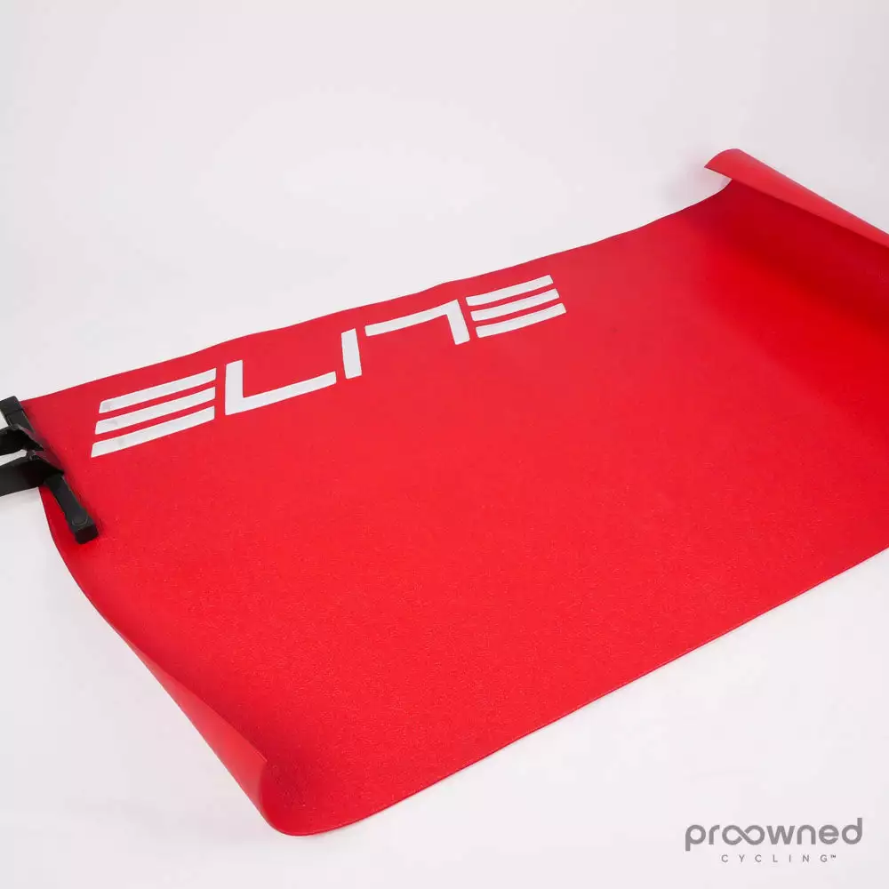 Training mat from Elite. The finishing touch to your training area, it improves comfort and protects the training area: The training mat, specially developed for indoor cycle trainers, decouples the bike’s resonance vibrations from the floor and protects against sweat and other impurities.