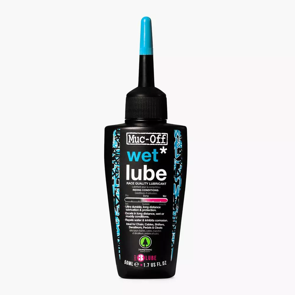 Muc-Off Wet Chain Lube is an ultra-durable, long-distance bicycle chain lubricant designed to excel over long distances in wet or muddy conditions. The Wet Lube is made entirely from renewable sources.