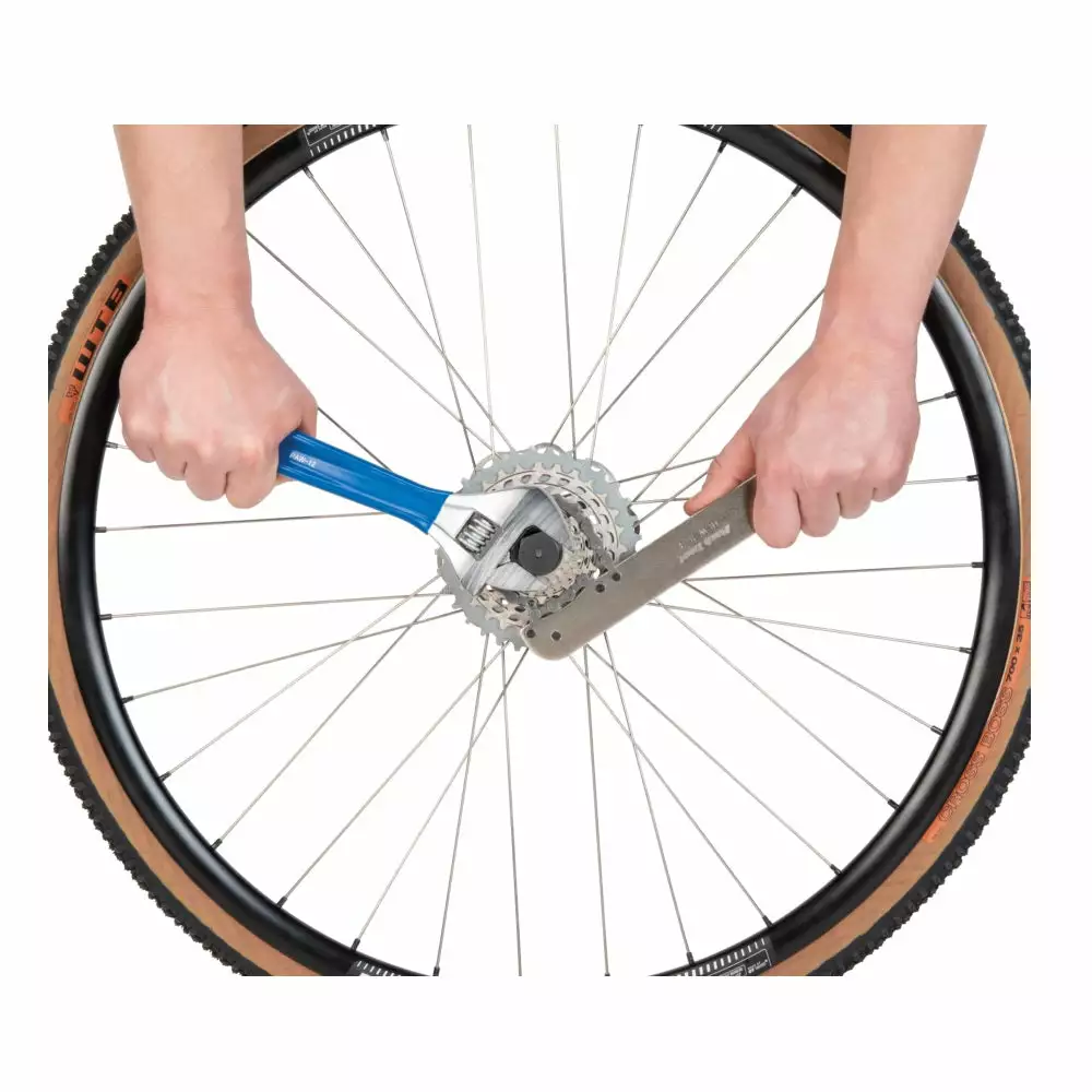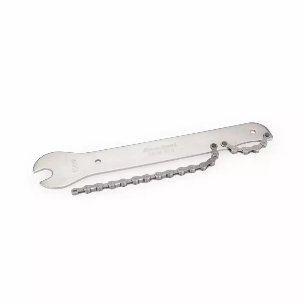 The chain whip and pedal wrench HCW-16.3 from Park Tool is a genius tool and a must-have for every home mechanic. In one end, you have a 15mm pedal wrench, so you easily can install or remove your pedals, and on the other end of the tool, you have a chain whip to remove the cassette. A great usable dual-function tool.