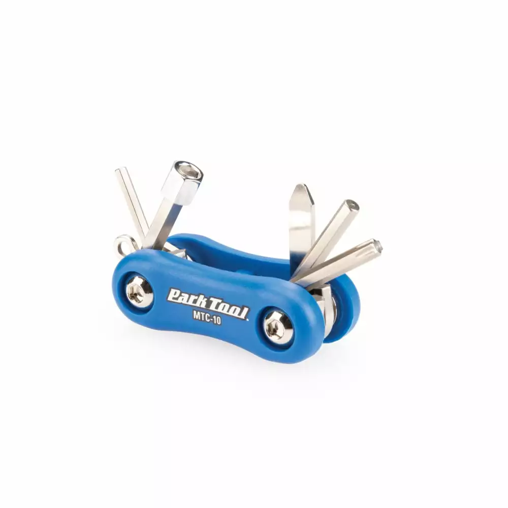 The MTC-10 is a multitool with many options. The hex wrenches consist of 3mm, 4mm, 5mm and 8mm. The multi tool also features a combo cross/straight tip screwdriver and a Torx T25.
