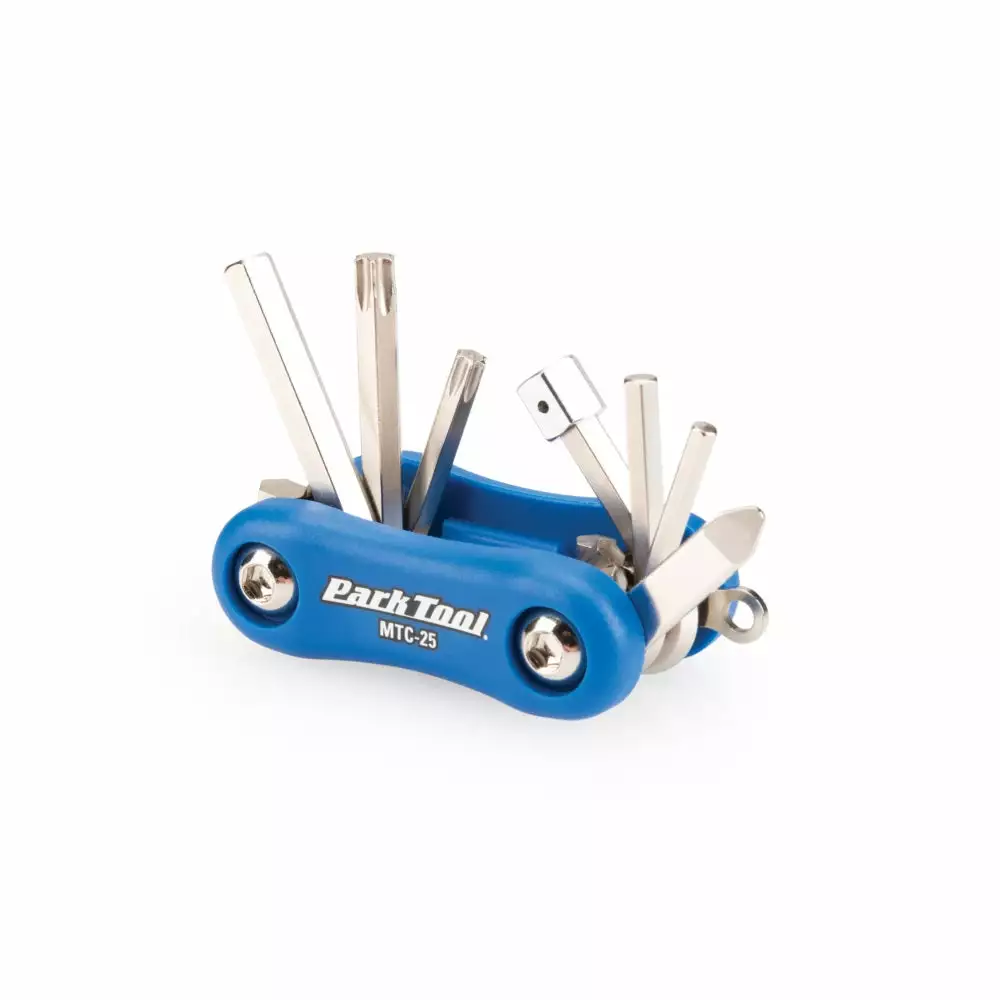 The MTC-25 is a multitool with many options. The hex wrenches consist of 3mm, 4mm, 5mm, 6mm and 8mm. The multi tool also features a combo cross/straight tip screwdriver and two Torx: T25 and T30.