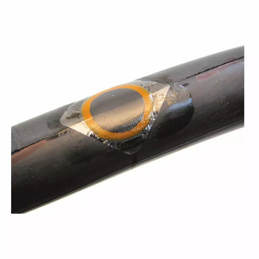 The patch kit VP-1 from Park Tool is designed to fix a puncture. The patch kit is a great helper for emergency tube repairs, no matter the size of most holes. The round patches are for smaller holes, and the oval patches are for wider cuts. Remember always to carry some spare tubes, but this Park Tool patch kit is a solid backup if you run dry of tubes during the ride.