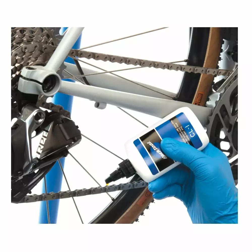 The blend chain lube CL-1 from Park Tool is a synthetic lube for dry and wet conditions. The lube contains PTFE and works excellent with cables, spoke nibbles and derailleur. The CL-1 reduces friction, prolongs component life and protect parts from corrosion and rust.