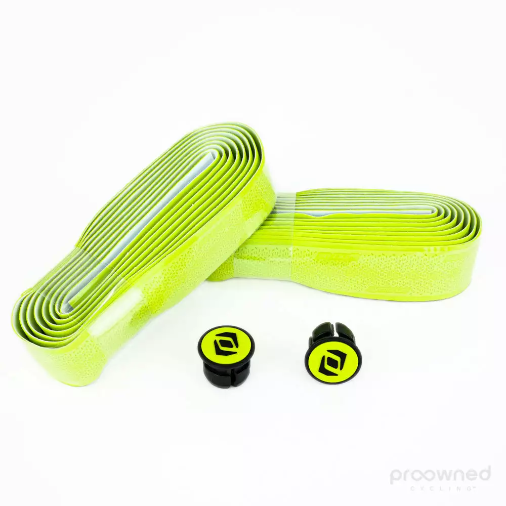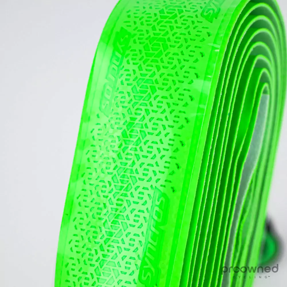 The bar tape is made of EVA foam with an embossed Syncros pattern. The combination of the materials and the pattern ensures that your hands stay on the handlebars