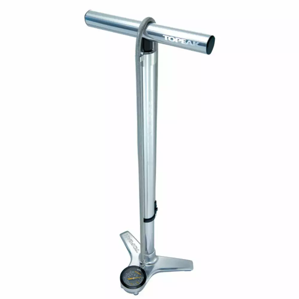 The SmartHead® ThreadLock hose head, which fits Presta and Schrader valves, has been added to make tyre inflation simple. Maximum stability is added by the machined aluminium base, and a long braided metal hose easily reaches bikes that are placed on the workstand.